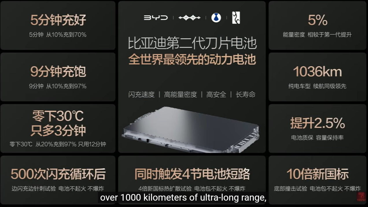 While the ability to charge faster tends to add weight, BYD’s new batteries are 5% more energy dense than before. That energy density is not amazing compared to some solid-state battery claims, including those made by BYD itself. However, the new Blade battery charges faster than the claims of many solid-state batteries. If the faster charging convinces people to get a smaller battery, then that could help close the weight gap. In addition, BYD claims that battery life is not significantly impacted by flash charging, and they improved their warranty terms for 2.5% less capacity loss.