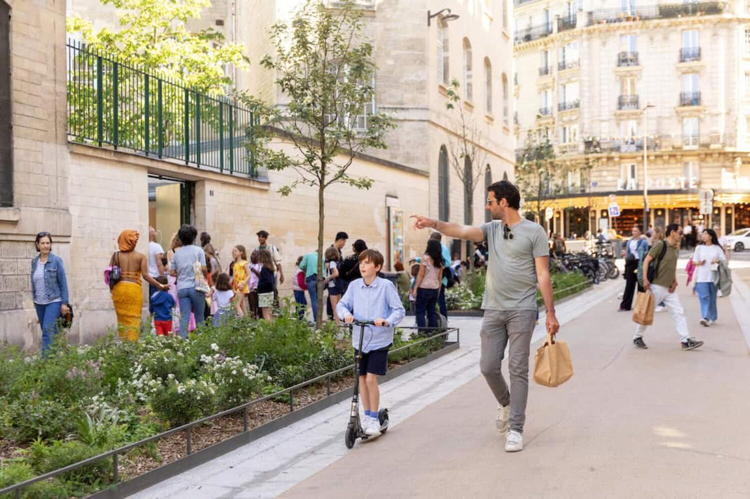 Paris has approved more than 300 school streets, replacing cars with people. Image: Joséphine Brueder/Ville de Paris