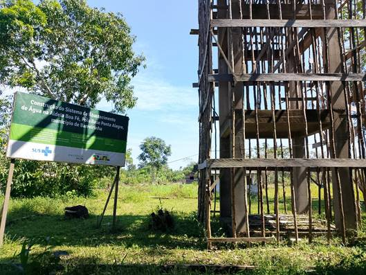 The reservoir was provided to the community by the East Roraima Special Indigenous Sanitation District (DSEI in Portuguese), the managing unit of the federal government’s Indigenous Health Care Subsystem (SASISUS). It has not received a single drop of water — because it has not even been installed yet.