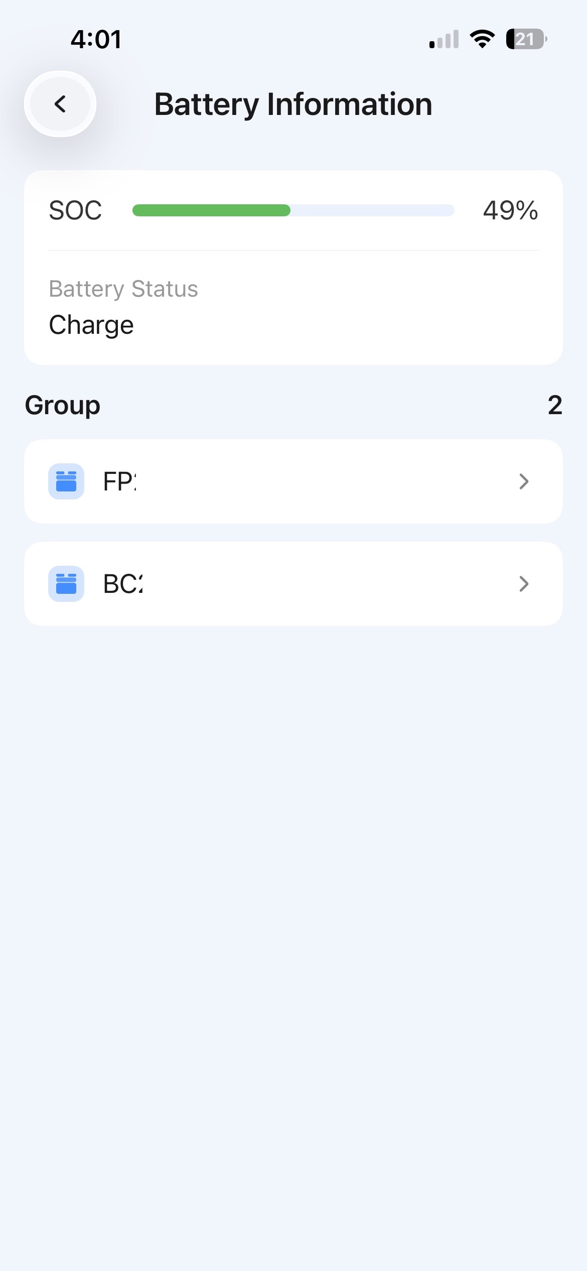 As you can see above, you first have a main screen where you can get some basic, core information on the weather, state of charge, and direction of power. You can also add devices there.