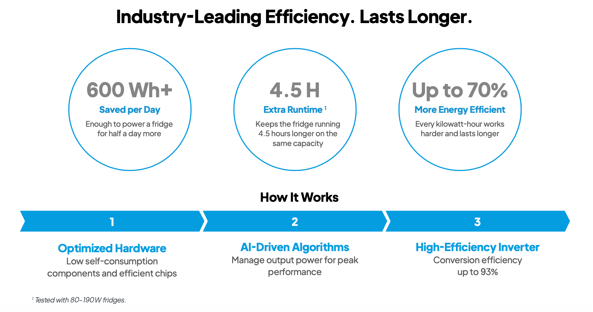BLUETTI prides itself on industry-leading tech, and a big highlight here is how efficient the system is. The graphic above explains a bit how that is achieved.