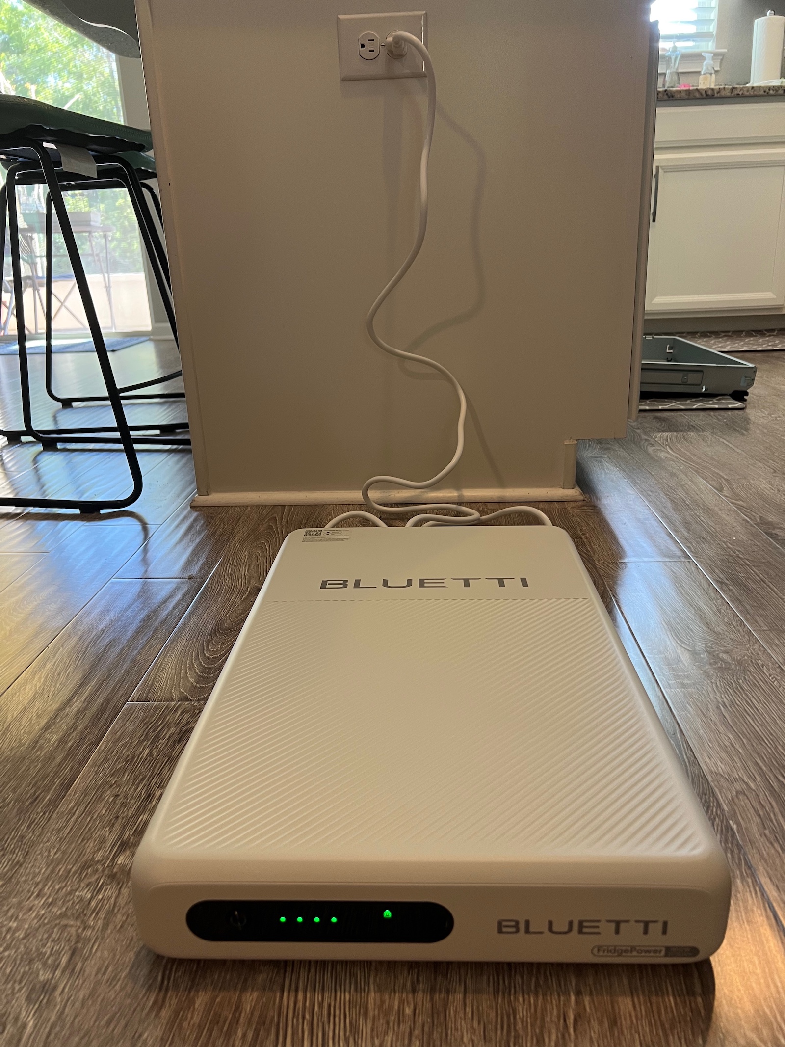 Again, the system I’m talking about here is the brand new BLUETTI FridgePower — in fact, it’s not even for sale yet, but you can sign up for exclusive early-access perks here. Update: Pricing, as noted above, is now available on Kickstarter. It’s thin, sleek, and made to fit on top of a refrigerator or right next to one. It acts as a UPS (uninterruptible power supply) to one of your home’s true essentials, your fridge. Going through a power outage and disaster is hard enough, but losing a full fridge of food makes it all the more difficult. Having a UPS like this can at least help to prevent that and keep your food fresh while you deal with other matters. Below, I’ll go through some pictures of the system connected to my fridge, and then I’ll show more pics and specs from BLUETTI highlighting different facts or usage options. First, though, here’s a quick video of the system in use on top of my refrigerator: