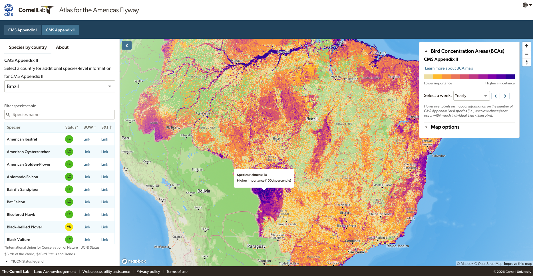 - The atlas highlights migratory connectivity — identifying key locations in North, Central and South America. Maintaining the environmental integrity of these places is critical to supporting migratory species and includes many tropical hotspots such as Mexico’s Yucatán Peninsula and the Pantanal wetland in Brazil and Paraguay.