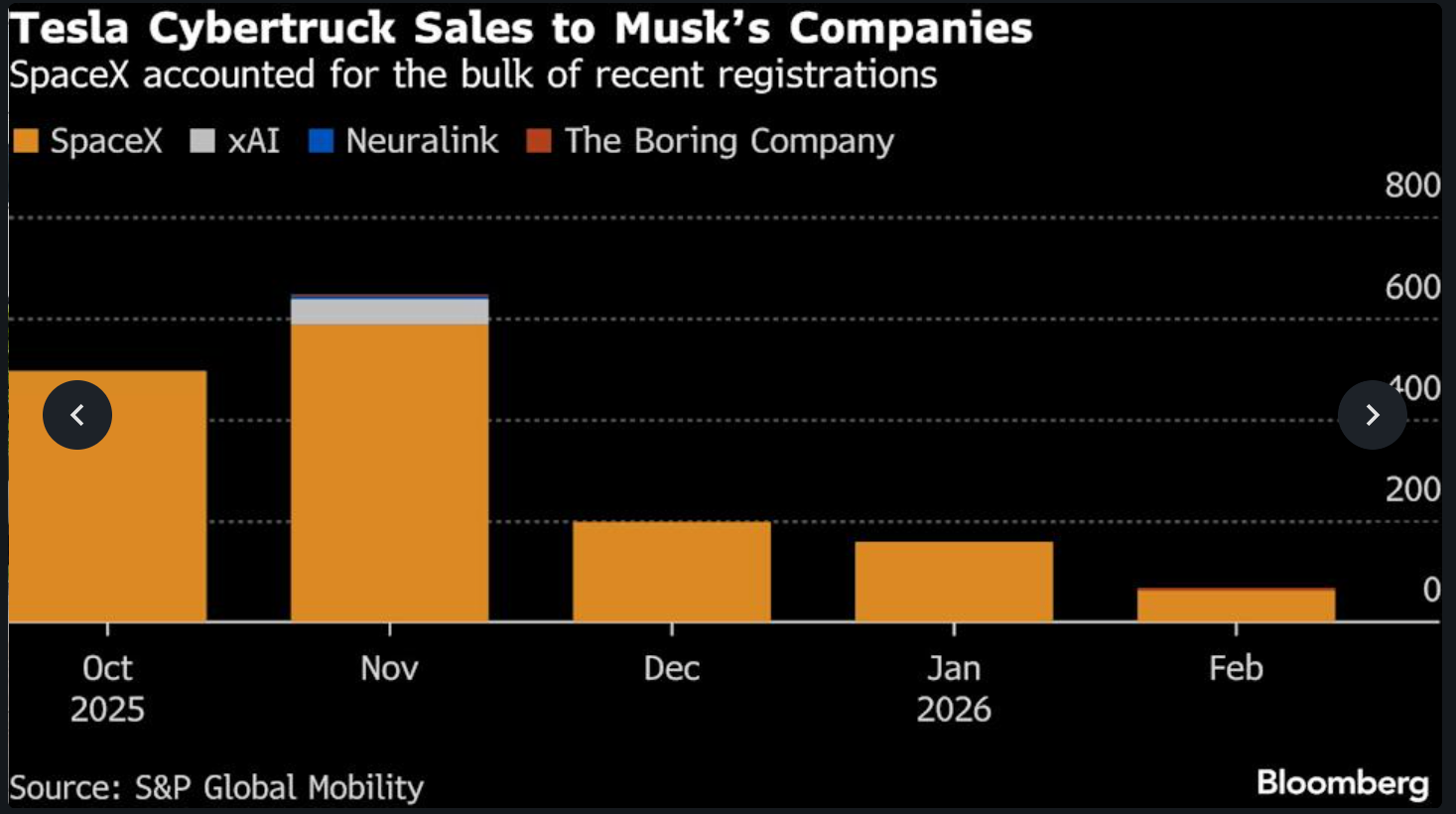 Bloomberg notes that Cybertruck registrations would have been down 51% in the 4th quarter if it wasn’t for those Musk company procurements.