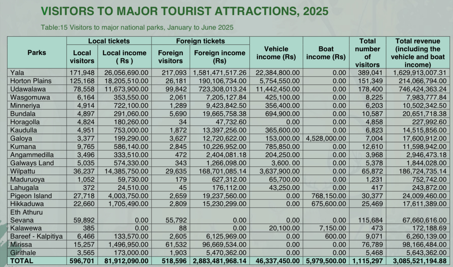 - Yala National Park in southern Sri Lanka attracted more than 380,000 visitors in the first half of 2025, generating an income of more than $5 million.