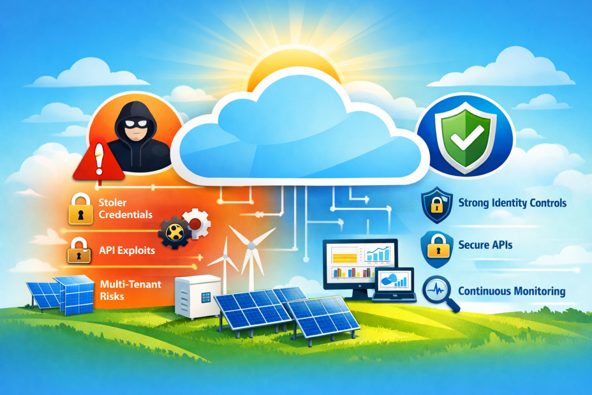 Cloud and SaaS platforms are now central to PV plant operations, but their centralization creates a high-impact cybersecurity risk where a single compromise can expose or disrupt entire fleets of installations. Attackers exploit weaknesses like stolen credentials, insecure APIs, multi-tenant flaws, and platform vulnerabilities, making strong identity controls, secure APIs, and continuous monitoring essential defenses.