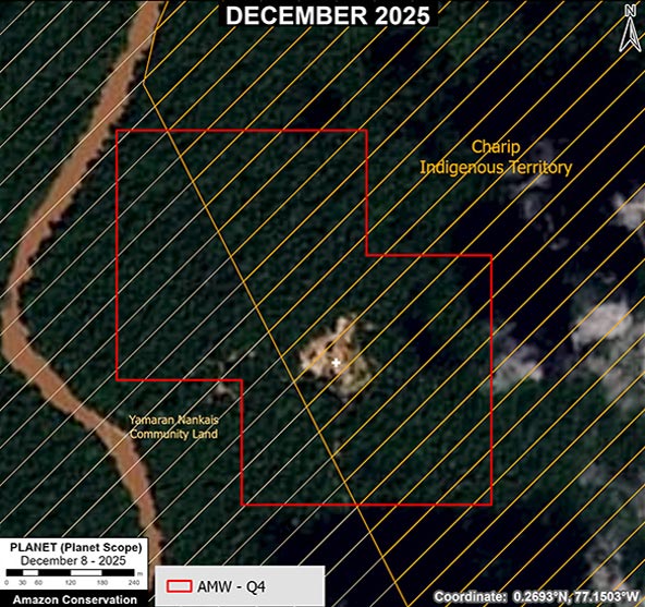 The Panorama report highlights 10 Indigenous territories or protected areas where new mining scars appeared. In one case, the Charip Indigenous territory near Ecuador’s border with Colombia, no mining had previously been detected since the data series began in 2018. But deforestation was detected in the last three months of 2025. This is a region with a strong presence of illegal armed groups that are responsible for mining, according to Jorge Villa, coordinator of the Monitoring of the Andes Amazon Program (MAAP) at Ecuador’s EcoCiencia Foundation.